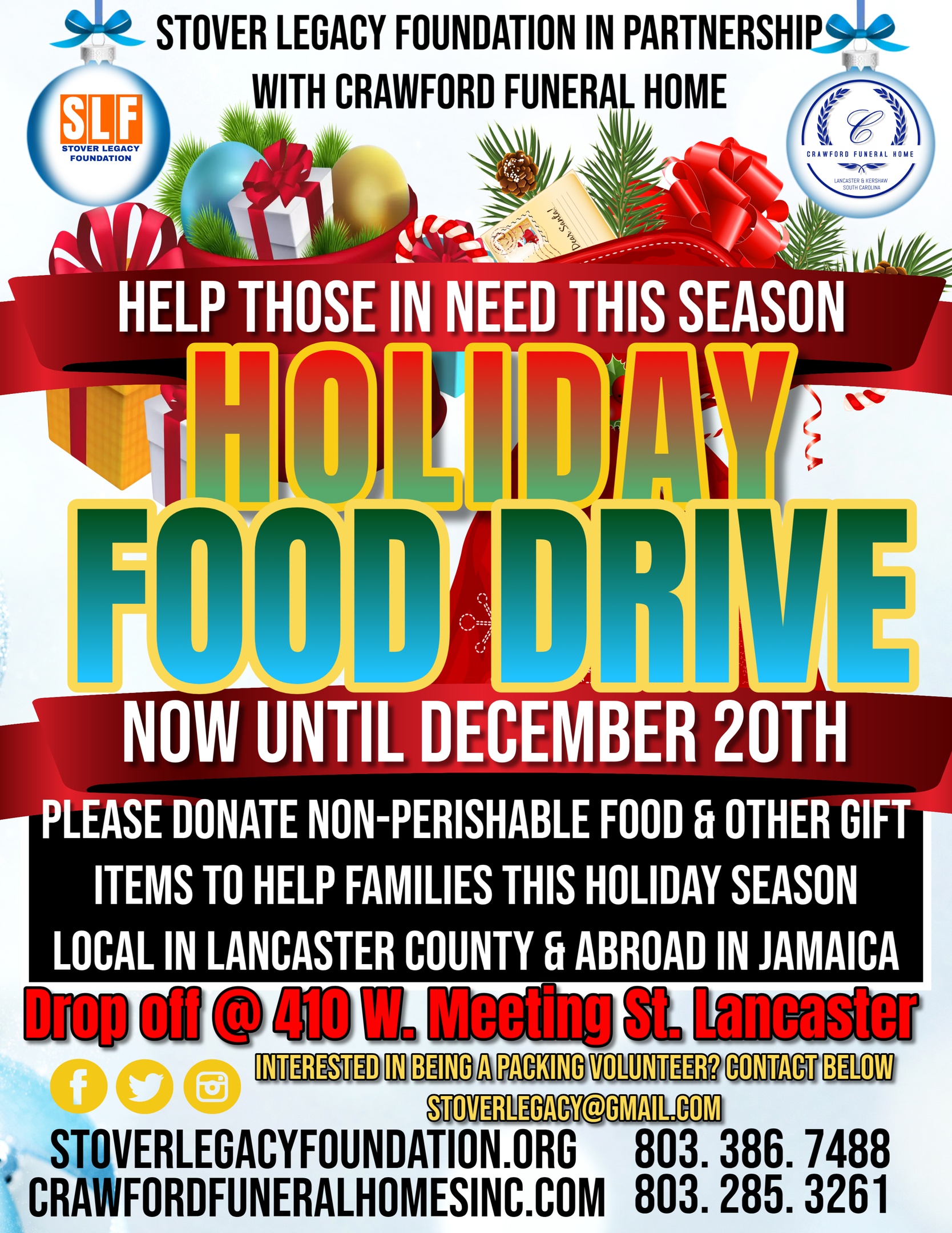 đź’› Together, we can fight hunger! Support the Need to Feed Food Drive and help families in Lancaster and Jamaica this holiday season. Every donation makes a difference. Donate today at Crawford Funeral Home now until Dec. 2025!
